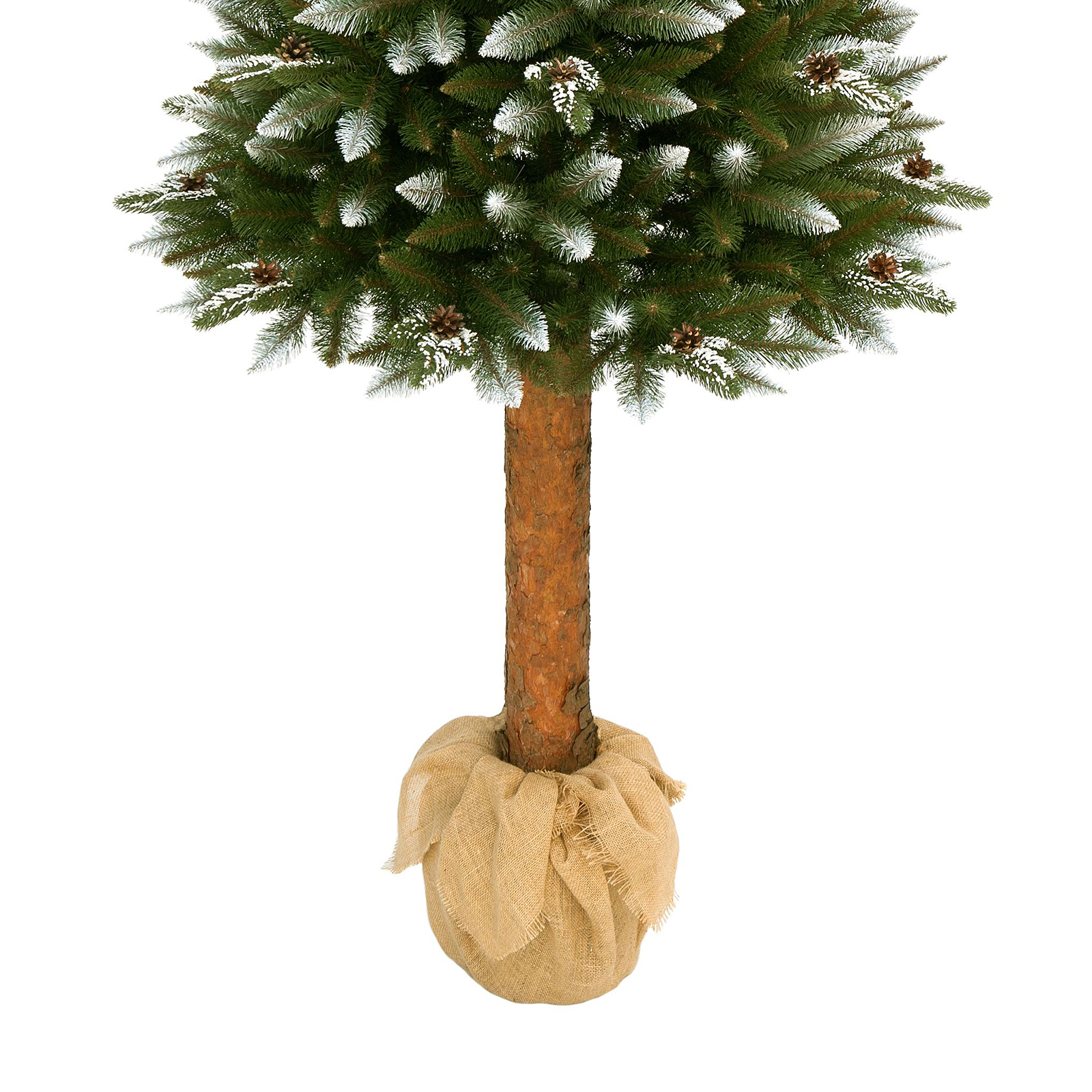 Korona choinki sztucznej osadzona jest na naturalnym pniu pochodzącym prosto z lasu, który wprowadza dodatkowy element autentyczności oraz zapach lasu w świątecznym wystroju wnętrza. Pień umieszczony został w doniczce otulonej naturalnym jutowym workiem. Choinka sztuczna na pniu prezentuje się niezwykle oryginalnie. Ozdobiona naturalnymi szyszkami wygląda bajecznie. Osadzenie choinki na pniu umożliwia radość z bożonarodzeniowego drzewkiem nawet w niewielkich pomieszczeniach. Choinka na pniu stanowi doskonałe połączenie naturalności, autentyczności oraz oryginalności. Wygląda, jak żywe drzewko i jest jednym z najbardziej pożądanych drzewek bożonarodzeniowych.