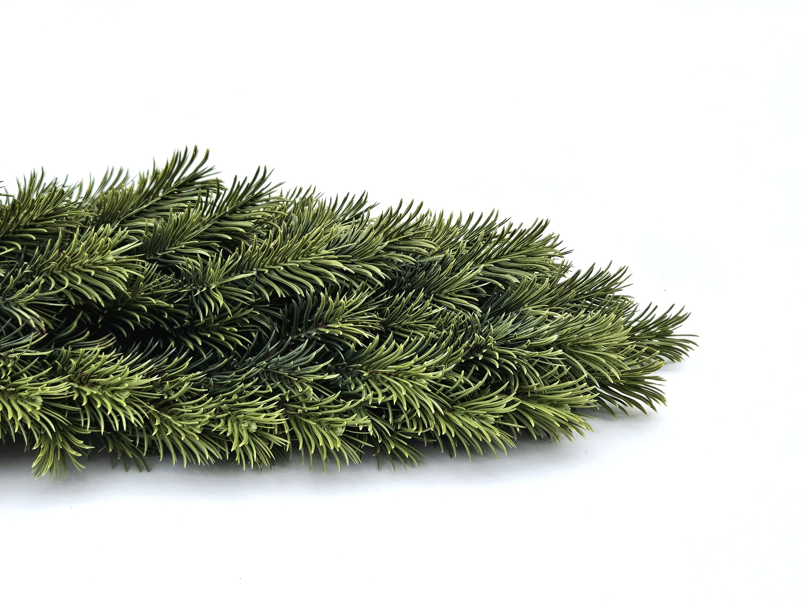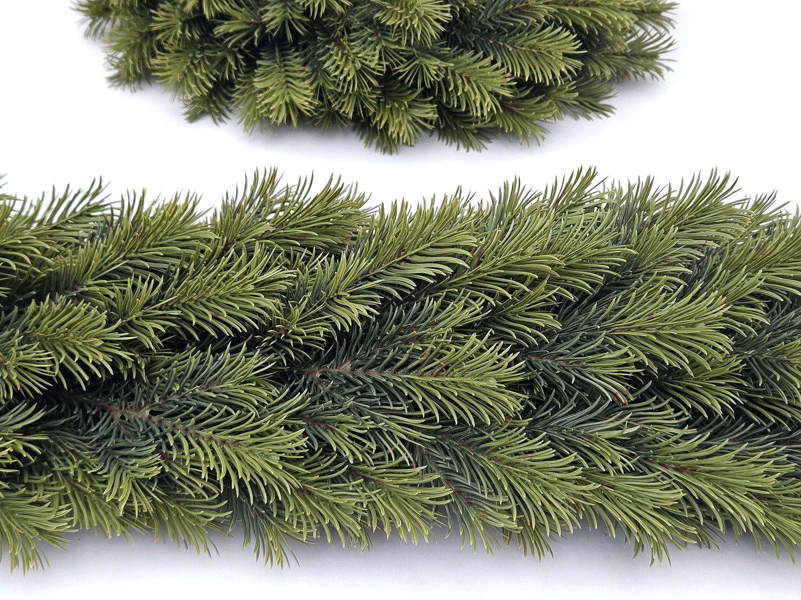 • Gęste, miękkie igły o naturalnym odcieniu zieleni – gałązki są pełne, sprężyste i przyjemne w dotyku. Delikatne przejścia kolorów nadają im głębi i autentycznego uroku, a całość prezentuje się niezwykle elegancko – niczym świeżo upleciona girlanda z prawdziwych gałązek świerka.