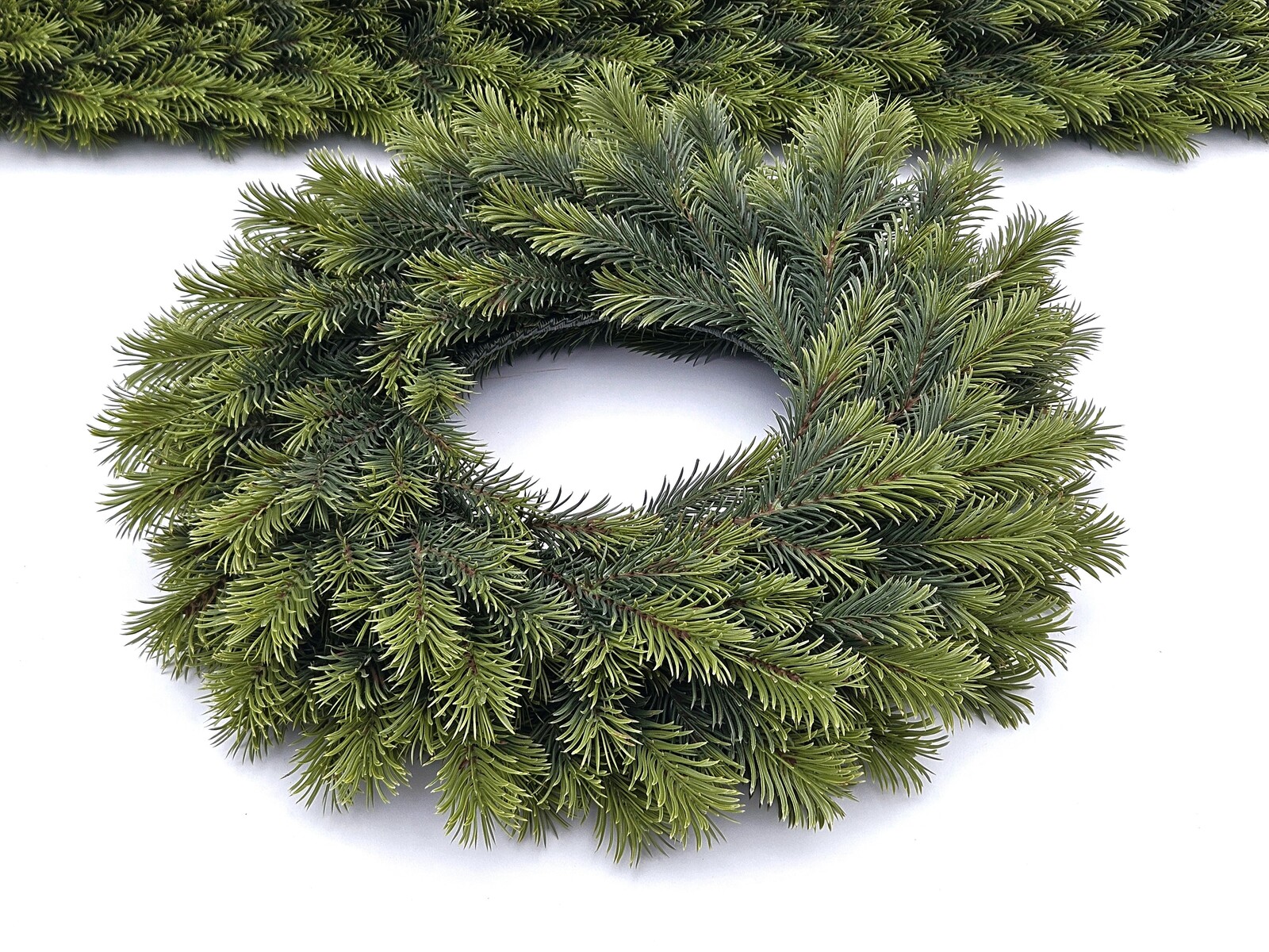 Wianki wykonane są z wysokiej jakości gałązek PE – trwałych, elastycznych i do złudzenia przypominających naturalne igliwie. Realistyczne igły zachowują swój kolor i kształt przez wiele sezonów, dzięki czemu wianek wygląda świeżo i naturalnie rok po roku. Starannie spleciona konstrukcja sprawia, że dekoracja jest stabilna, a zarazem lekka i łatwa do zawieszenia lub ustawienia w dowolnym miejscu.