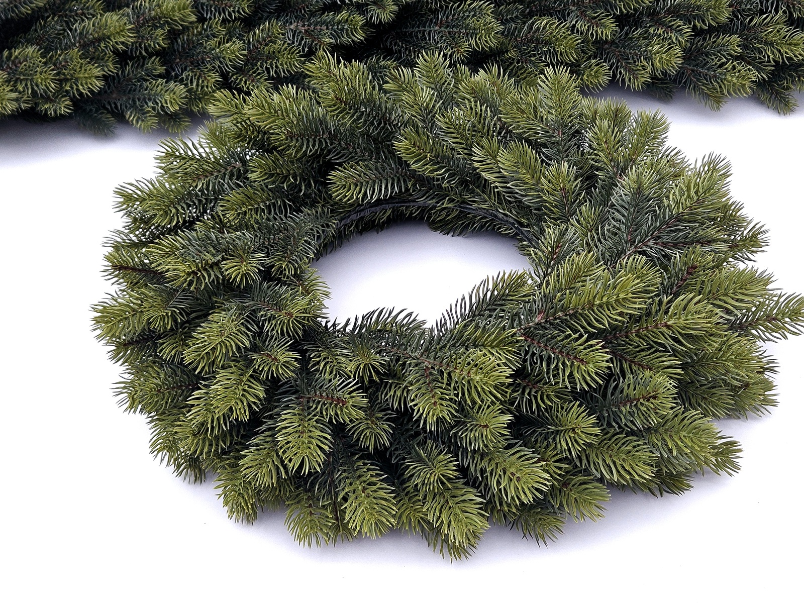 Wianki wykonane są z wysokiej jakości gałązek PE – trwałych, elastycznych i do złudzenia przypominających naturalne igliwie. Realistyczne igły zachowują swój kolor i kształt przez wiele sezonów, dzięki czemu wianek wygląda świeżo i naturalnie rok po roku. Starannie spleciona konstrukcja sprawia, że dekoracja jest stabilna, a zarazem lekka i łatwa do zawieszenia lub ustawienia w dowolnym miejscu.